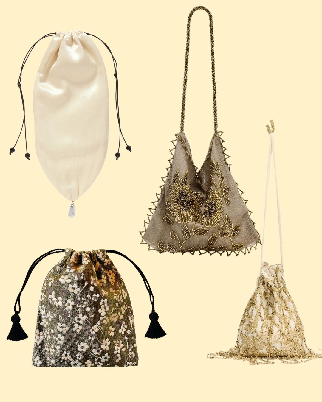 Sophie Buhai pouch, Mini sequin bucket bag, Gathered sequin bag, Evening drawstring bag.